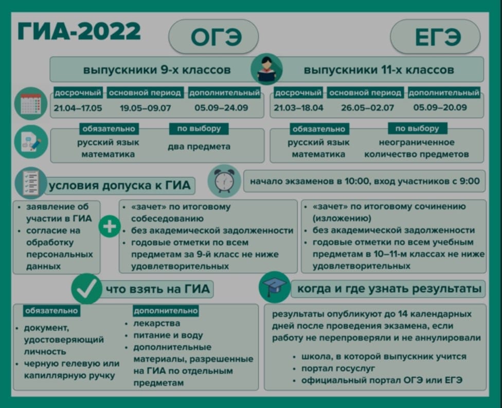 План мероприятий по повышению результатов подготовки обучающихся 9 классов к участию в ОГ в МБОУ «ООШ с. Радужное Грозненского муниципального района» ЧР в 2025-2026 учебном году Скачать Приказ МОиН ЧР от 12.04.24г № 244/803 О внесении изменений в приказы Министерства просвещения Российской Федерации и Федеральной службы по надзору в сфере образования и науки от 18 декабря 2023г. №953/2116, №954/2117, №955/2118 Скачать Приказ МОиН ЧР от 12.04.24г № 243/802 О внесении изменений в Порядок проведения государственной итоговой аттестации по образовательным программам средненего общего образования, утвержденный приказом Министерства просвещения Российской Федерации и Федеральной службы по надзору в сфере образования и науки от 4 апреля 202г. №233/552 Скачать Приказ №16, от 12.01.2023г. Об утверждении состава специалистов, привлекаемых к проведению и проверке итогового собеседования в 2022-2023 учебного года. Скачать Приказ №15, от 12.01.2023г. О проведении итогового собеседования по русскому языку в 9 классе МБОУ "ООШ с.Радужное" Скачать Приказ №163/472 от 12.04.2021 об утверждении единого расписания и продолжительности проведения государственного выпускного экзамена по образовательным программам Скачать Приказ МОиН ЧР от 18.06.21г № 725-п О внесении изменений в приказ Министерства образования и науки Чеченской Республики от 26 февраля 2021 года № 218-п «Об утверждении минимального количества первичных баллов, подтверждающих освоение обучающимися образовательных программ основного общего образования в 2021 году» Скачать Приказ МОиН ЧР от 13.12.21г № 1662-п О сроках и местах подачи заявлений на регистрацию для прохождения государственной итоговой аттестации по образовательным программам основного общего образования 2022 году Скачать Приказ от 16.12.2021 № 370 О сроках и местах подачи заявлений на регистрацию для прохождения государственной итоговой аттестации по образовательным программам основного общего образования в 2022 году в МБОУ "ООШ с.Радужное" Скачать Приказ МОиН ЧР от 23.12.21г № 1777-п "О сроках, местах и порядке информирования о результатах государственной итоговой аттестации по образовательным программам основного общего образования в Чеченской Республике в 2022году. Скачать Приказ №17 от 12.01.2022 г. О проведении итогового собеседования по русскому языку в 9 классе Скачать Расписание ГИА-2022 Скачать Актуализированные Графики обработки ЭР и апелляций основного этапа ГИА-9 Скачать Скачать Приказ об утверждении состава специалистов, привлекаемых к проведению и проверке итогового собеседования в 2020 - 2021 учебном году Приказ о сроках и местах подачи заявлений на прохождение ГИА 1.ОФИЦИАЛЬНЫЙ ИНФОРМАЦИОННЫЙ ПОРТАЛ ЕДИНОГО ГОСУДАРСТВЕННОГО ЭКЗАМЕНА http://ege.edu.ru 2.Официальный информационный портал ГОСУДАРСТВЕННОЙ ИТОГОВОЙ АТТЕСТАЦИИ gia.edu.ru Cсылки на разделы «ГИА» и «Навигатор ГИА» официального сайта Рособрнадзора (obrnadzor.gov.ru), телефон «горячей линии» Рособрнадзора по вопросам ЕГЭ и телефон доверия ЕГЭ, а также на официальные сайты ФГБНУ «ФИПИ» (fipi.ru) и ФГБУ «ФЦТ» (rustest.ru). Советы выпускникам при подготовке к ГИА и ЕГЭ В экзаменационную пору всегда присутствует психологическое напряжение. Стресс при этом - абсолютно нормальная реакция организма. Легкие эмоциональные всплески полезны, они положительно сказываются на работоспособности и усиливают умственную деятельность. Но излишнее эмоциональное нап