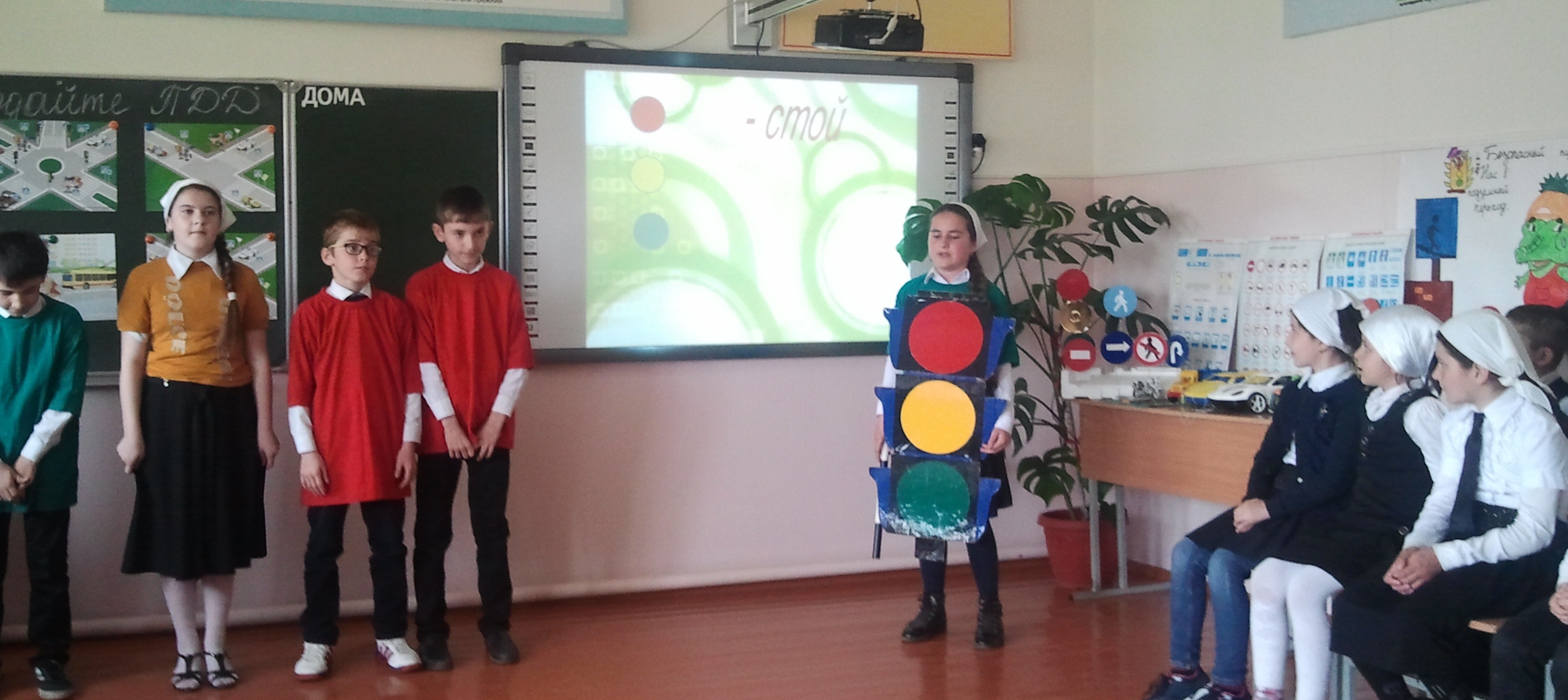 Вначале в школе была проведена беседа с учащимися 1-4 классов. Заместитель директора по ВР Батаева М.С-М. рассказала детям о важности соблюдения ПДД. Особый интерес у учащихся вызвала презентация «Знай и выполняй Правила дорожного движения». Презентация эта была подготовлена члена отряда «Юные инспектора движения». Был представлен материал из интернета о дорожно-транспортных происшествиях, в результате которых гибнут люди. Также проведены игры на знания дорожных знаков.