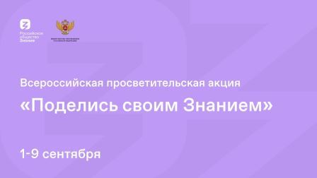 С 1 по 9 сентября пройдёт одна из крупнейших просветительских Акций для молодежи в России «Поделись своим Знанием».