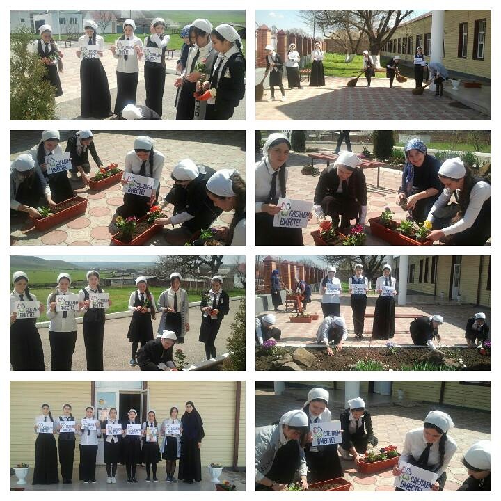 Всероссийской экологической акции "Сделаем вместе" в МБОУ «ООШ с. Радужное» 12.04.17г. Наши эколидеры и участники акции посадили цветы.