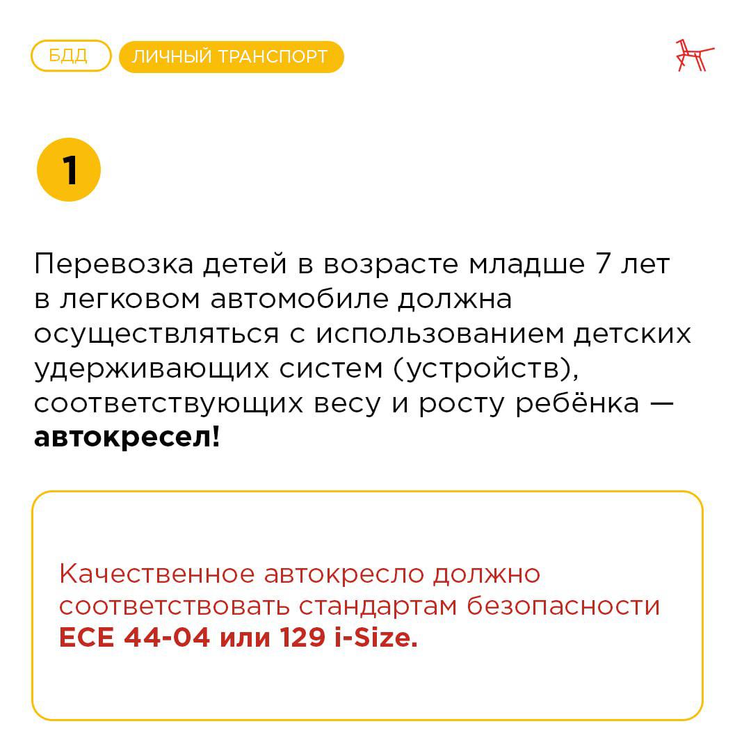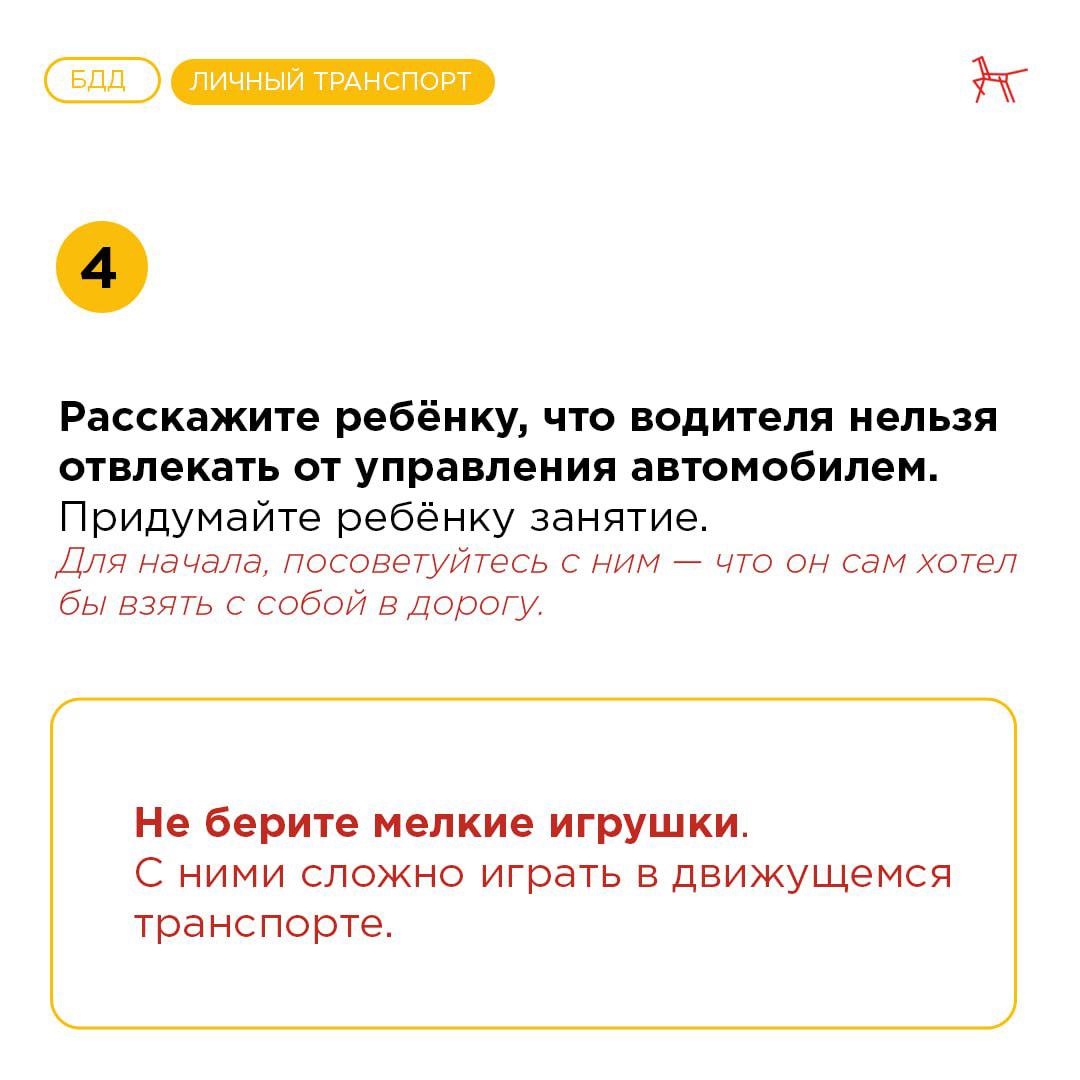 07.05.2024На время праздников многие семьи отправляются в автопутешествия. Как организовать поездку, чтобы и родителям, и ребёнку было комфортно, рассказывает Центр по профилактике ДДТТ Института воспитания.Не забывайте, что во время стоянки запрещено оставлять ребёнка младше 7 лет одного в автомобиле: в тёплое время года он может перегреться. Об этом правиле также говорится в Уголовном кодексе Российской Федерации (статья 125). За его нарушение предусмотрен штраф или лишение свободы.