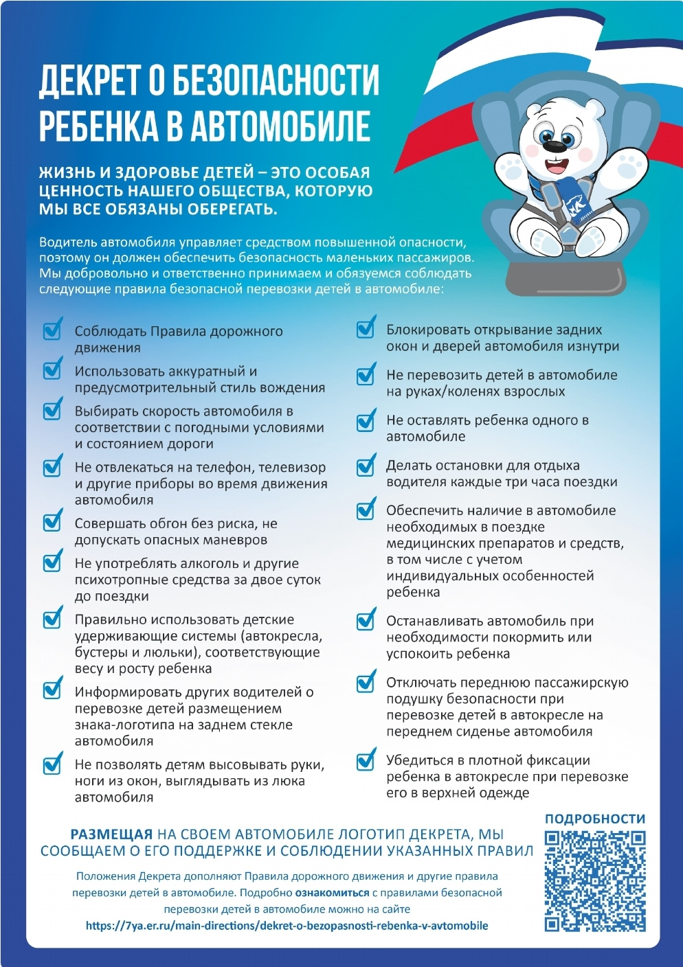Разместите на своём автомобиле логотип Декрета и в своих социальных сетях ссылку на Декрет и медиа-материалы, чтобы больше людей узнали о правилах безопасной перевозки детей в автомобиле.Присоединяясь к акции, вы обеспечиваете безопасность маленьких пассажиров