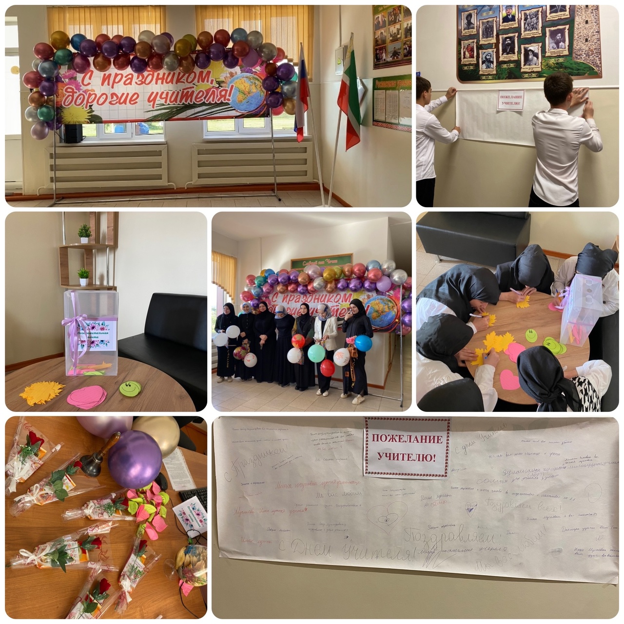 04.10.2024День учителя — профессиональный праздник работников сферы образования. Был учреждён указом президиума Верховного Совета СССР от 29 сентября 1965 года и отмечался в первое воскресенье октября. С 1994 года Россия отмечает День учителя 5 октября вместе со Всемирным днём учителей. Роль учителя важна в жизни человека: педагог закладывает в ребенка не только необходимые для дальнейшего пути знания, но и вдохновение, мотивацию на саморазвитие и желание ставить цели и добиваться их. На протяжении обучения человек встречает разных педагогов-наставников, и все они заслуживают благодарности за столь непростой труд. Накануне Дня учителя, советские школьники спешили на занятия с охапками цветов. Классы украшали самодельными стенгазетами и воздушными шариками. Активисты самодеятельности готовили поздравительные концерты с песнями, стихами и веселыми сценками. Современные школьники не отступают от добрых традиций прошлого. Как и их родители, они приходят в праздничный день с букетами и презентами. Подарки на День учителя принято делать своими руками День учителя — прекрасный повод для того, чтобы поблагодарить тех, кто выбрал себе важную и сложную профессию. Многие люди, только став взрослыми, понимают, каким важным был вклад преподавателей в их судьбу и карьеру. А пока это осознание не пришло, молодежи лучше довериться советам взрослых и уважать своих наставников. Активисты школы организовали мероприятие в честь профессионального праздника. Украсили школу шарами, встречали учителей с поздравлениями, подготовили стихотворения, песни про любимых учителей. Советник директора по воспитанию вместе с школьным активом организовали акцию «Поздравительная почта». Учащиеся приняли участие в акции , отправили поздравительные письма своим учителям . А также была организована акция «Пожелания Учителю» , где принять участие мог любой обучающийся школы,написав пожелание своему любимому учителю.