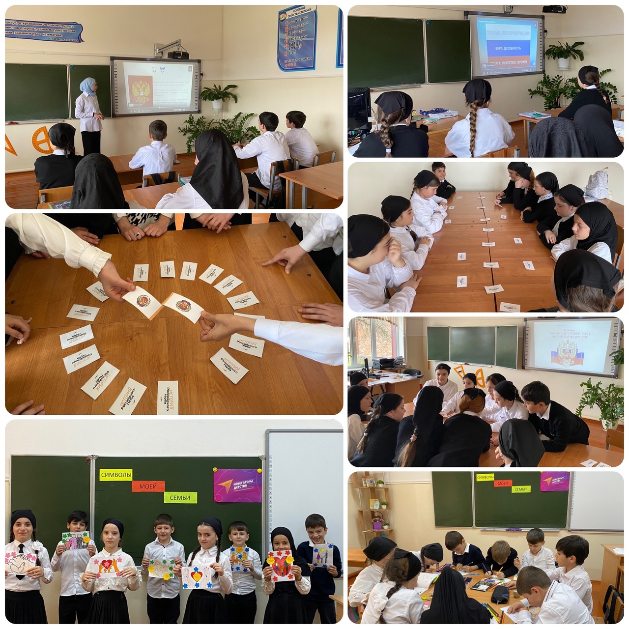В преддверии этой знаменательной даты в МБОУ «ООШ с.Радужное» советником директора по воспитанию совместно с активом школы была организована акция "Герб России в моей школе", в которой приняли участие учащиеся школы.Был осуществлен просмотр цикла видеороликов «ДНК России»Обучающиеся начальной школы организовали творческую мастерскую «Символы моей семьи».Ученики показали символы своих семей. Каждый из школьников создал уникальный шедевр, наполненный теплотой и заботой. А с историей герба России обучающиеся школы познакомились,принимая участие в настольной игре «История Российского герба”