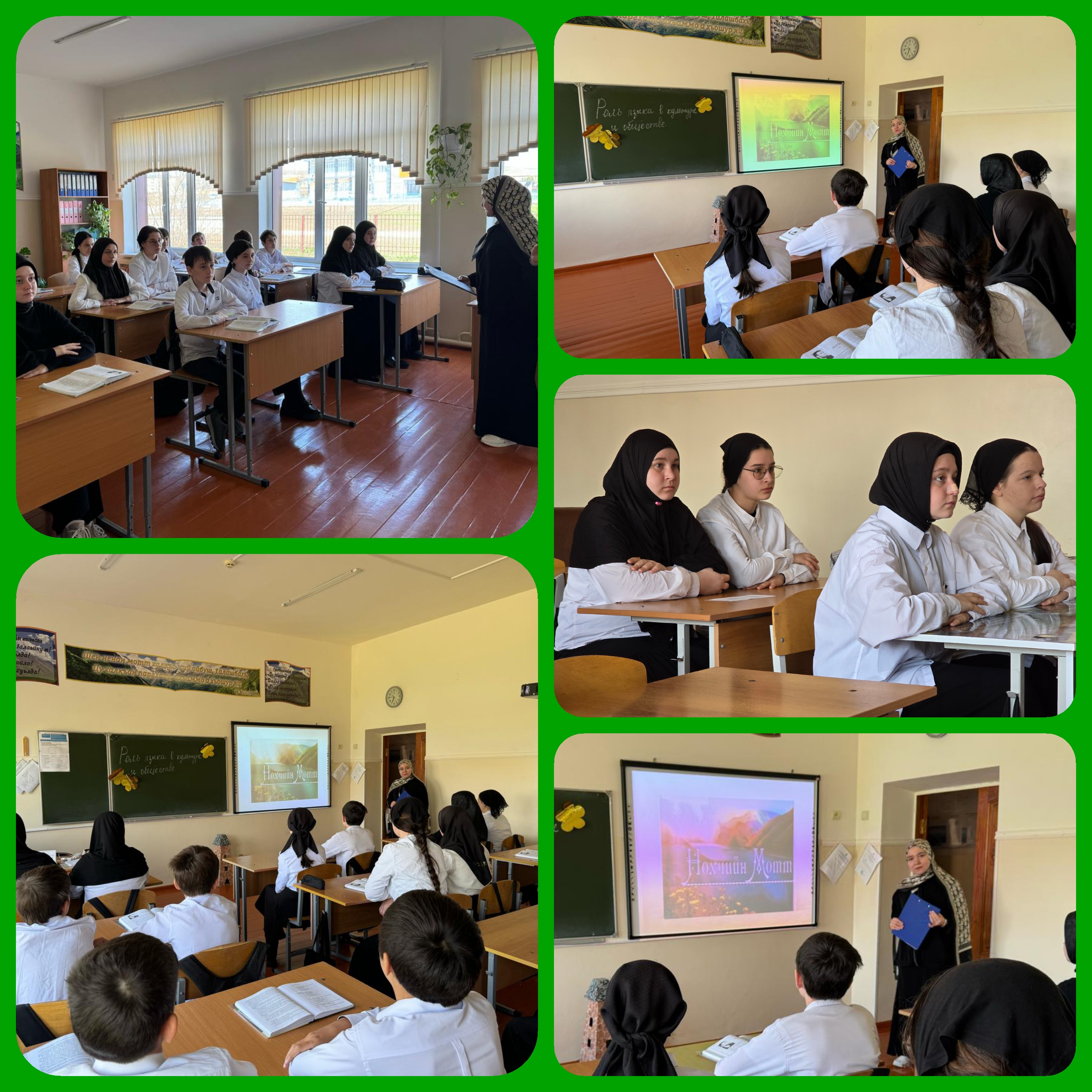 21.04.2025В МБОУ «ООШ с. Радужное» учителем чеченского языка и литературы Умаровой З. проведена открытая лекция «Роль языка в культуре и обществе». Мероприятие было приурочено ко Дню чеченского языка и направлено на: раскрытие значения языка как инструмента коммуникации и носителя культурных ценностей; изучение языкового разнообразия и его влияния на традиции народов; обсуждение роли языка в условиях глобализации и миграции; популяризацию языкового и культурного наследия.