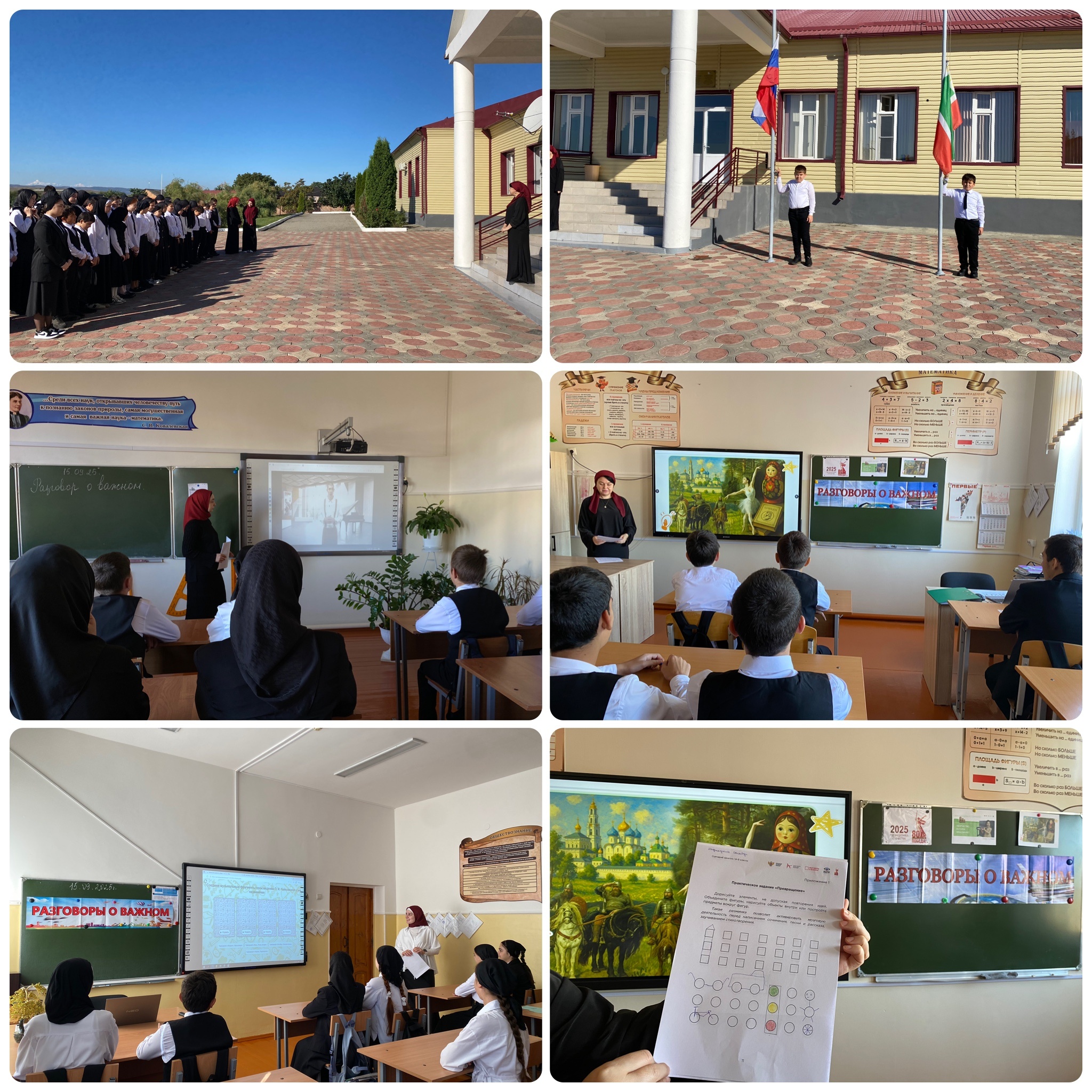 15.09.2025Школа традиционно начала новую учебную неделю с торжественной линейки. Мероприятие, призванное настроить учащихся на продуктивные занятия и укрепить чувство единства и патриотизма, состоялось на школьном дворе.Линейка началась с построения классов и приветственных слов педагогического состава школы.Кульминацией мероприятия стало исполнение гимнов Российской Федерации и Чеченской Республики. Исполнение гимнов стало символом единства, патриотизма и приверженности ценностям общества.Непосредственно после линейки в каждом классе состоялся урок «Разговоры о важном». Темой сегодняшнего занятия стало « Творчество,которое объединяет».Ученики узнали, что творчество помогает людям понимать друг друга и строить мосты взаимопонимания.Разгадывали кроссворд и проверяли свои знания, а также поделились своими мыслями и мнениями по данному вопросу.Проведение линейки и урока «Разговоры о важном» в начале каждой учебной недели является важной частью образовательного процесса в школе. Эти мероприятия способствуют формированию гражданской позиции, патриотизма и чувства ответственности у подрастающего поколения. Администрация школы выражает надежду, что данная традиция будет и впредь поддерживаться и развиваться.